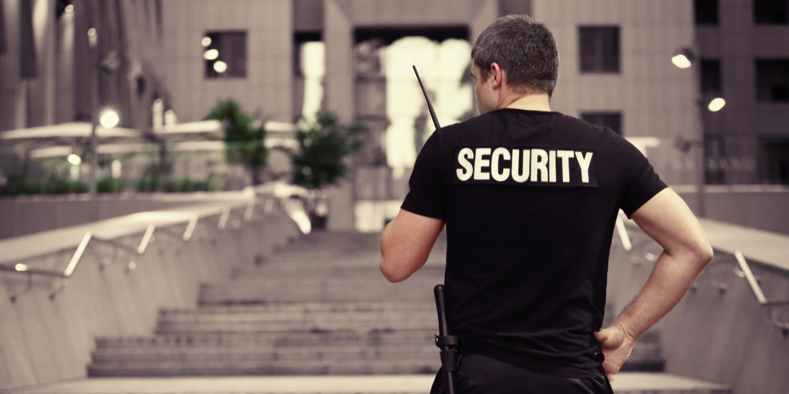 Fixed-post guards at entrances, tills, stock rooms and car parks.